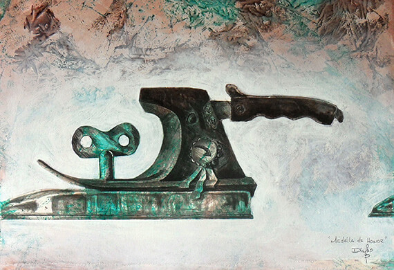 Más figurativo, en Dimas lo conceptual asume el entorno de "lo viejo", y aún más: